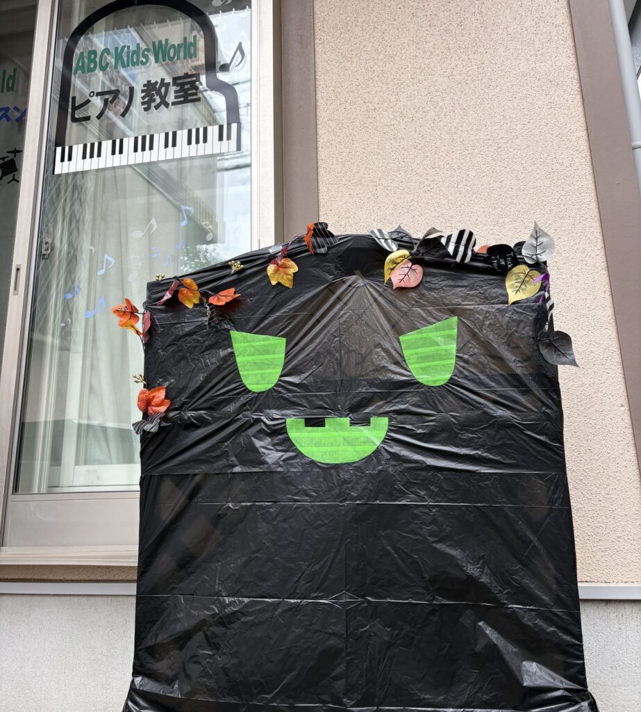 教室の入口では、大きなモンスター(?)がみんなをお出迎え!
