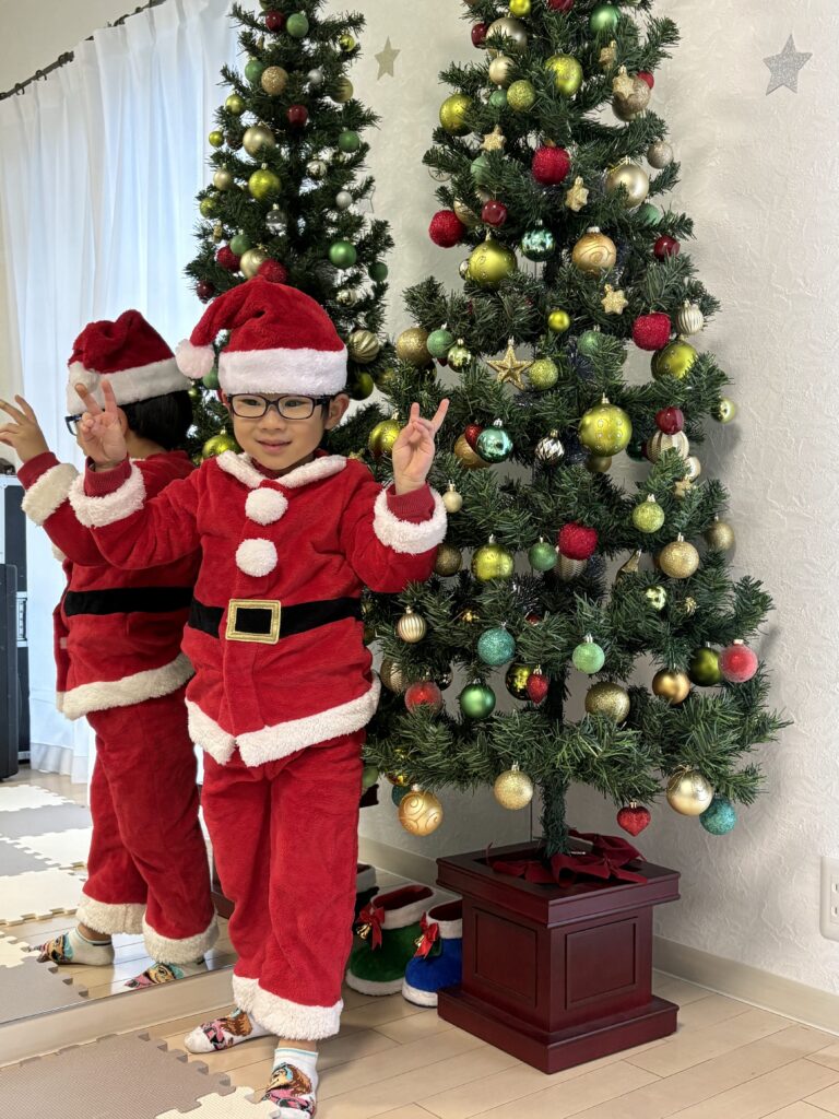 3・4歳児のリズム英語クラスでは、こんなに可愛らしいサンタさんも、一生懸命スピーチをしてくれました。