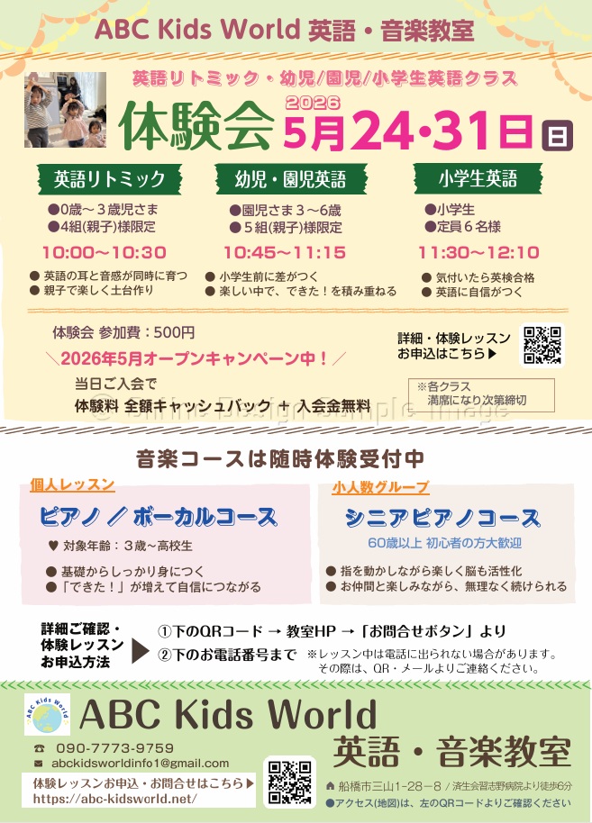 さらに、ピアノ・ボーカルなどの音楽コースも随時体験可能です。